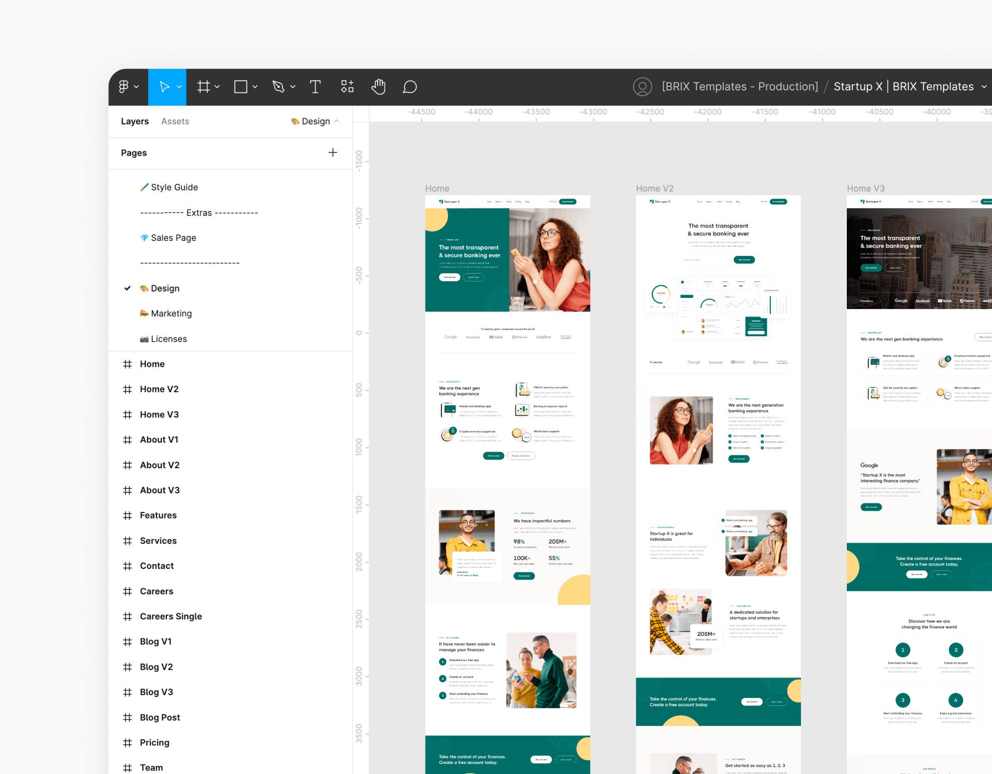 Send us an email to startuperx@brixtemplates.com with your purchase receipt, and we will send you the editable Figma file for the Startuper X template.